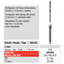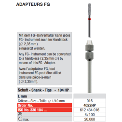 Sécurité et rapidité - insérez votre instrument FG dans l’adaptateur pour CA ou PM. La tige est conçue comme une pince autoserrante.