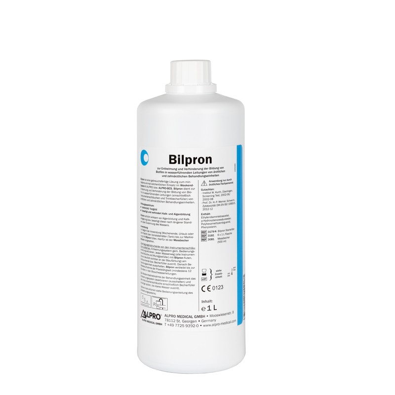 Bidon de 1L de Oxygenal 6. Solution de décontamination de l’eau des sprays pour une hygiène parfaite lors de vos soins dentaires.