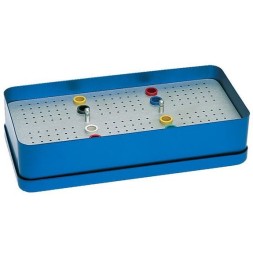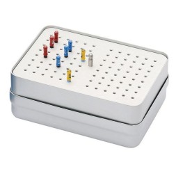Format 14x5,5x5cm 60 perforations pour instruments canalaires, 4 godets plastique stérilisables