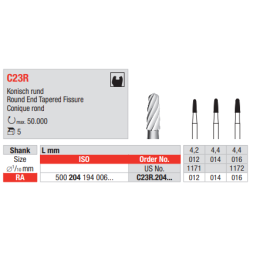 Angles de coupe agressifs permettent de créer un instrument de coupe concentrique, plus doux et durable pour couper rapidement les matériaux tels que l'amalgame, l'or, la porcelaine, l'émail et l'alliage céramique-métal.