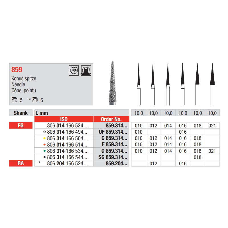 FRAISES DIAMANT FG ROUGE X5 F859.314.018 EDENTA