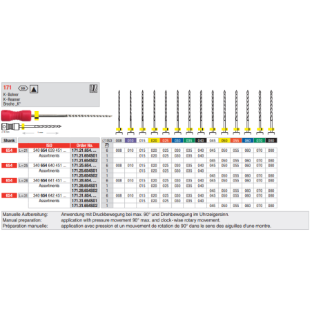 Limes Hedstroem pour une utilisation manuelle. Les limes H sont parfois appelées racleurs endodontiques.