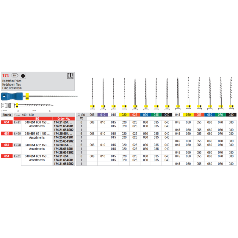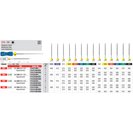 Limes Hedstroem pour une utilisation manuelle. Les limes H sont parfois appelées racleurs endodontiques.