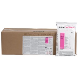 Boîte de 150 lingettes. Lingettes à usage unique, prêtes à l'emploi, imprégnées d'un liquide désinfectant pour les surfaces et dispositifs médicaux