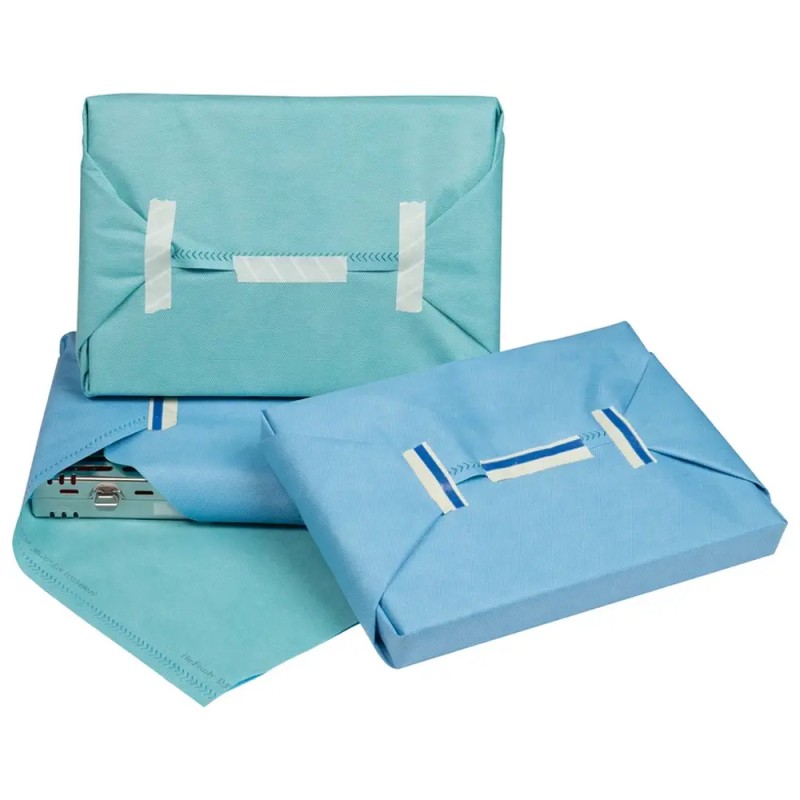 Deux couches de tissu non tissé, soudées par ultrasons sur deux bords, permettent un conditionnement rapide et facile et garantissent la conformité aux réglementations. Deux bandes de couleurs différentes facilitent la détection des déchirures ou des perforations après stérilisation.
