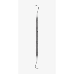 Le crochet à l'extrémité est utilisé pour l'exploration tactile de l'émail.