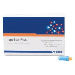 Ciment verre ionomère postérieur chémopolymérisable à usages multiples. Conditionnement: boite de 50 compules prise rapide, teinte A3